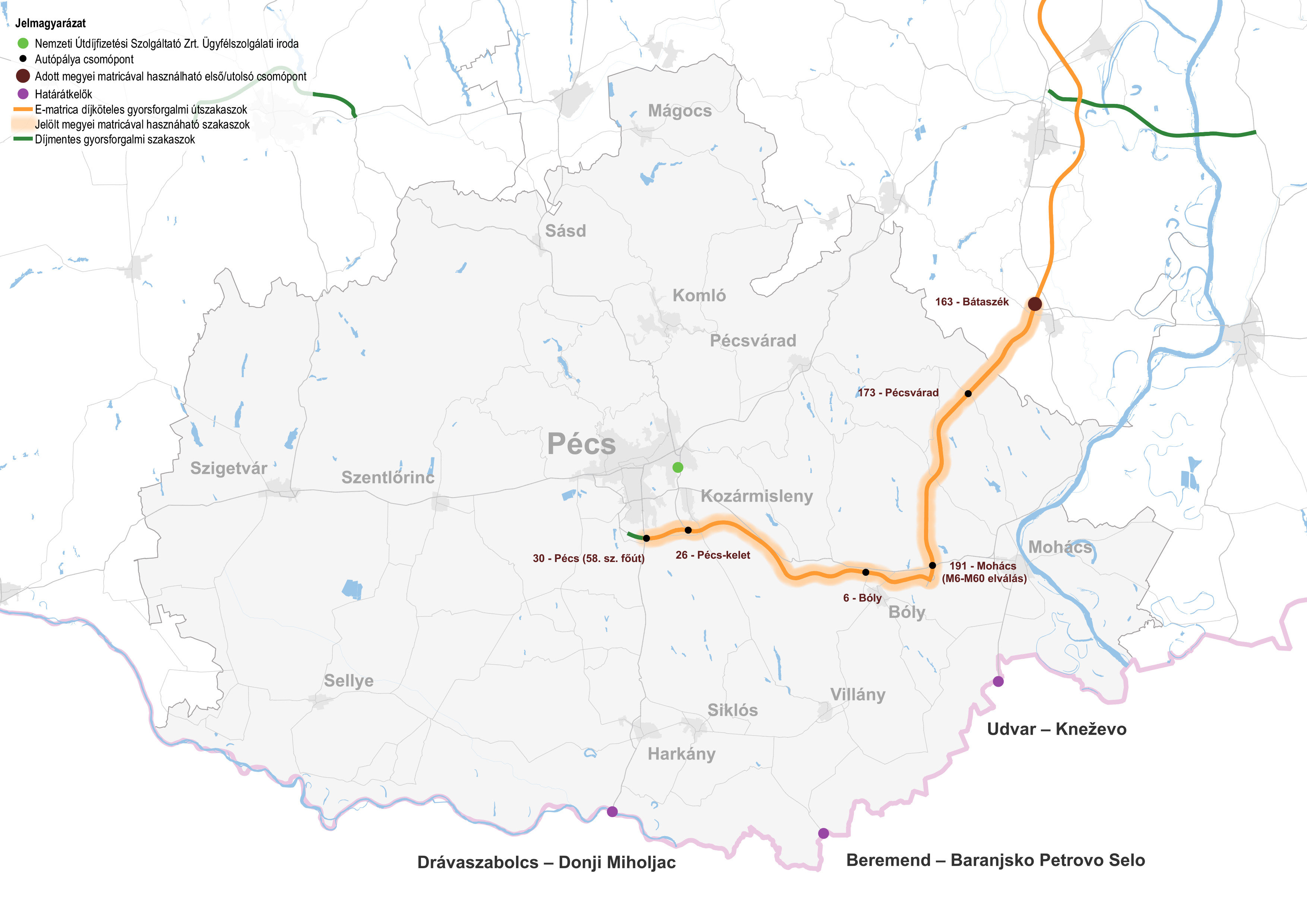 A meglévők mellett az alábbi útszakaszok válnak fizetőssé 2024. január 1-től az 45/2020. (XI.28.) ITM rendelet alapján:
