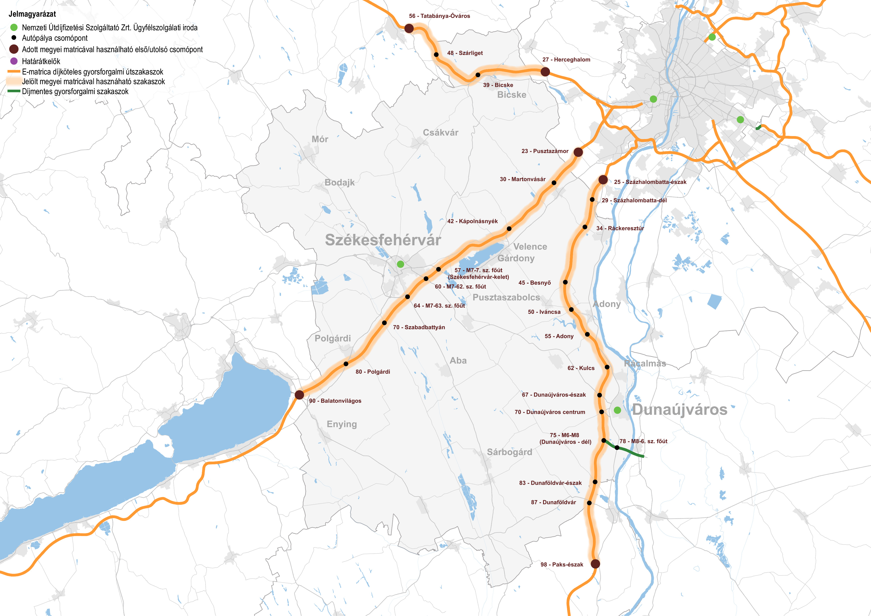 Fizetős utak vármegyei térképe 2024