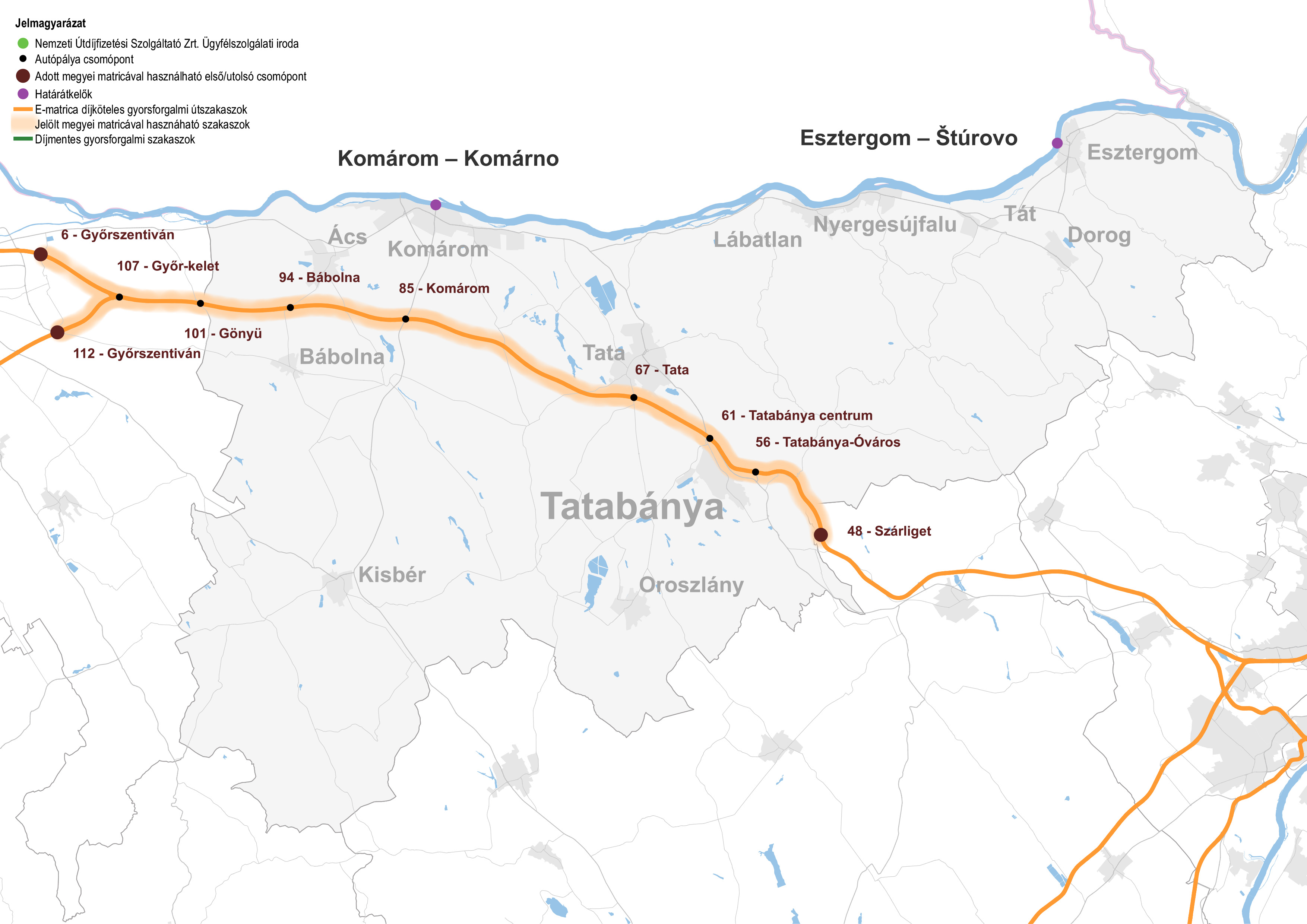Fizetős utak Komárom-Esztergom vármegye