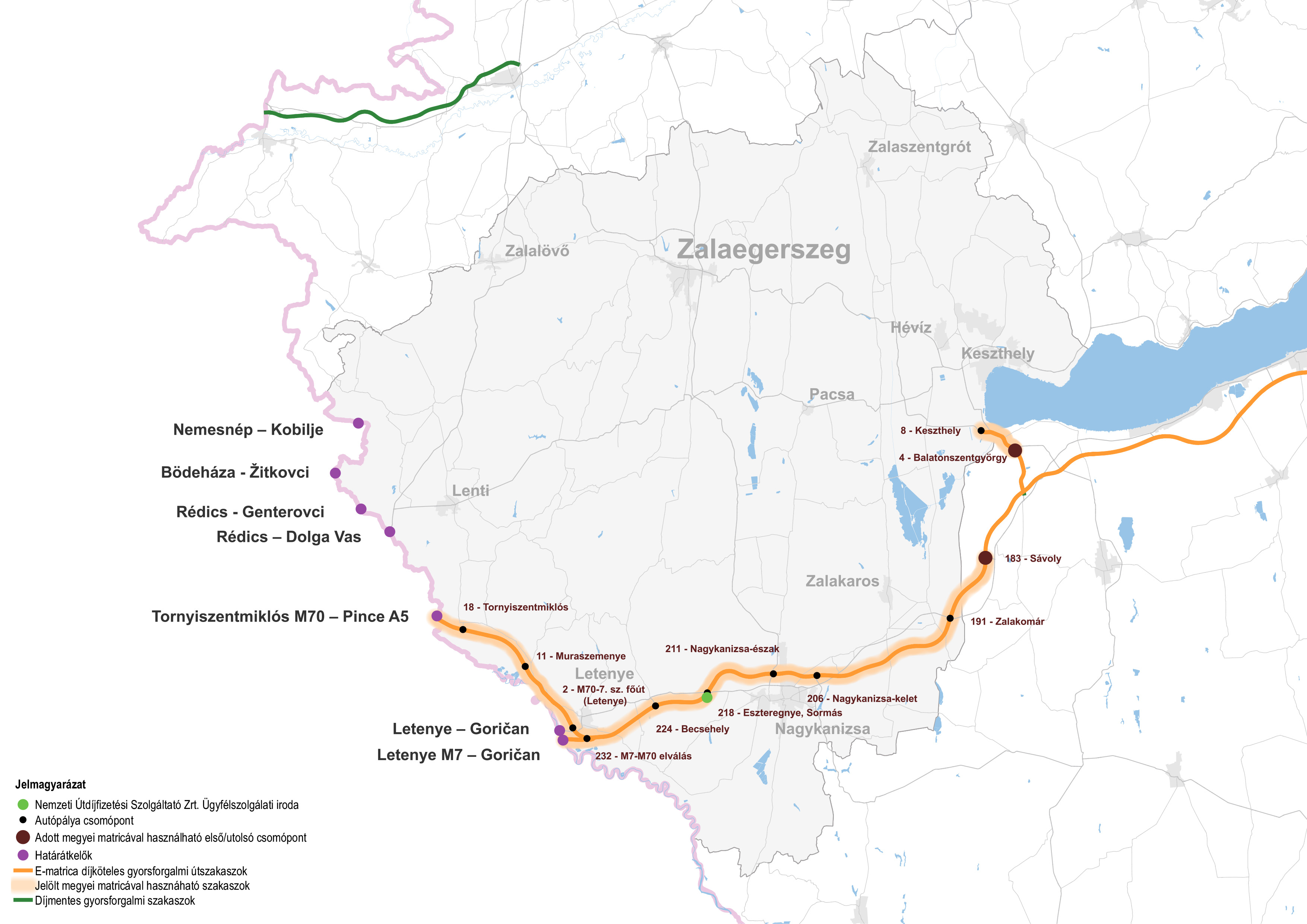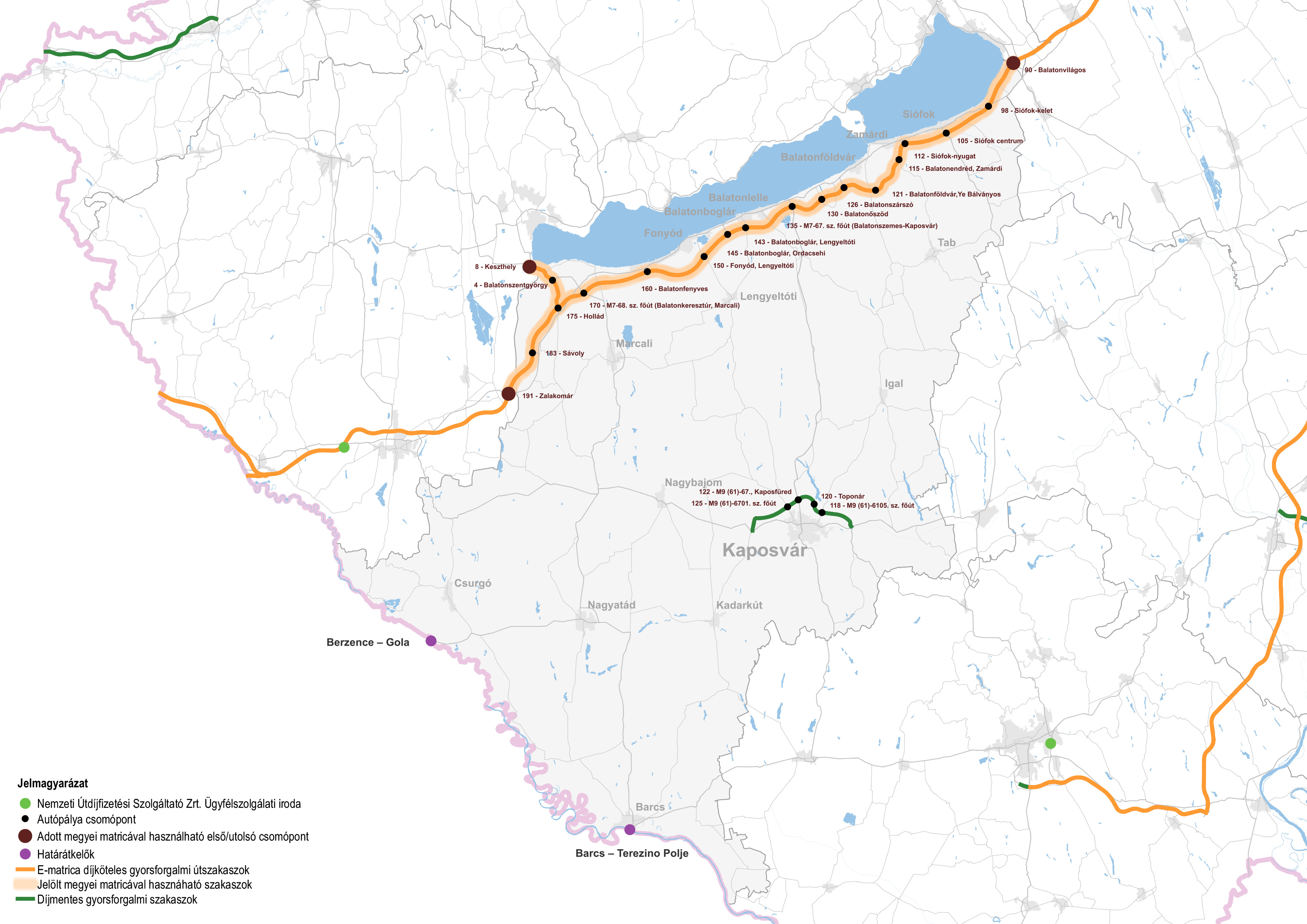 - az M76-os Balatonszentgyörgy/Balatonberény csomóponttól Keszthely-Fenékpuszta csomópontig