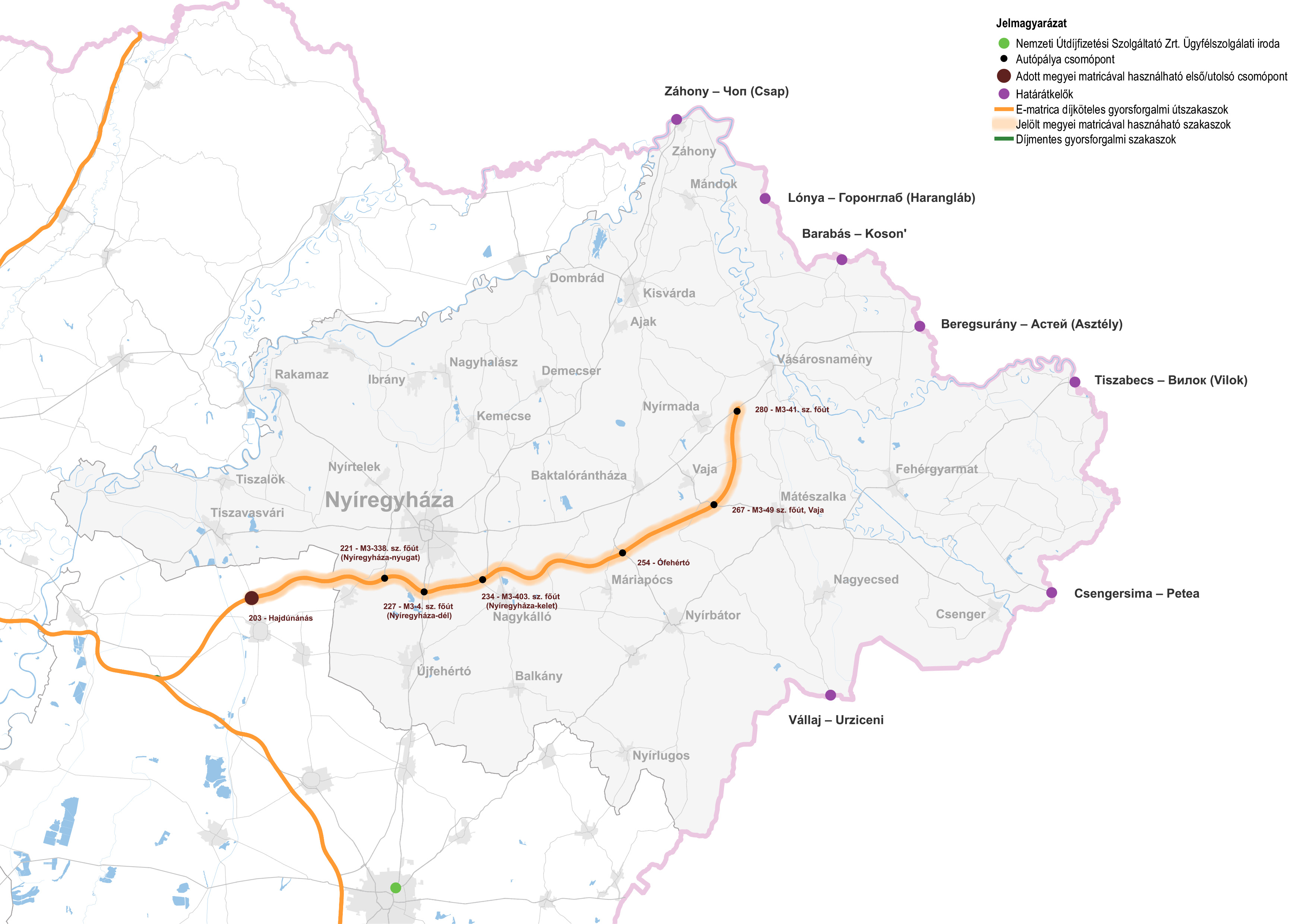 Fizetős utak Szabolcs-Szatmár-Bereg vármegye